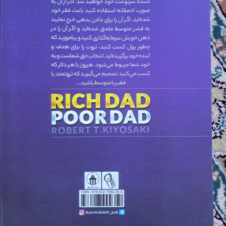 چیزهایی که پولدارها برای کسب ثروت به فرزندان خود آموزش میدهندو طبقه متوسط و فقیر از آن بی اطلاع و غافلندکتاب پدر پولدار پدر بی پول (1997) سبک خود زندگی نامه را با توصیه های شخصی ترکیب می کند تا مراحل رسیدن به ثروت و استقلال مالی را شرح دهد. نویسنده بر این باور است که در این کتاب پُرفروشِ مجله نیویورک تایمز، نکاتی را می آموزد که هرگز در جامعه نیاموخته ایم. از نظر او، آنچه طبقۀ بالاتر به فرزندان شان منتقل می کنند، دانش ضروری برای کسب ثروت یعنی «ثروتمند ماندن» است. کیوساکی ماجرای دوران سرمایه گذاری فوق العاده موفق و بازنشستگی زودرس خودش در 47 سالگی را برای تأیید ادعاهایش تعریف می کند.